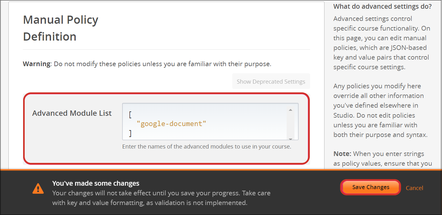 :alt: This image shows the Advance Module List, where the XBlocks are added to the platform.