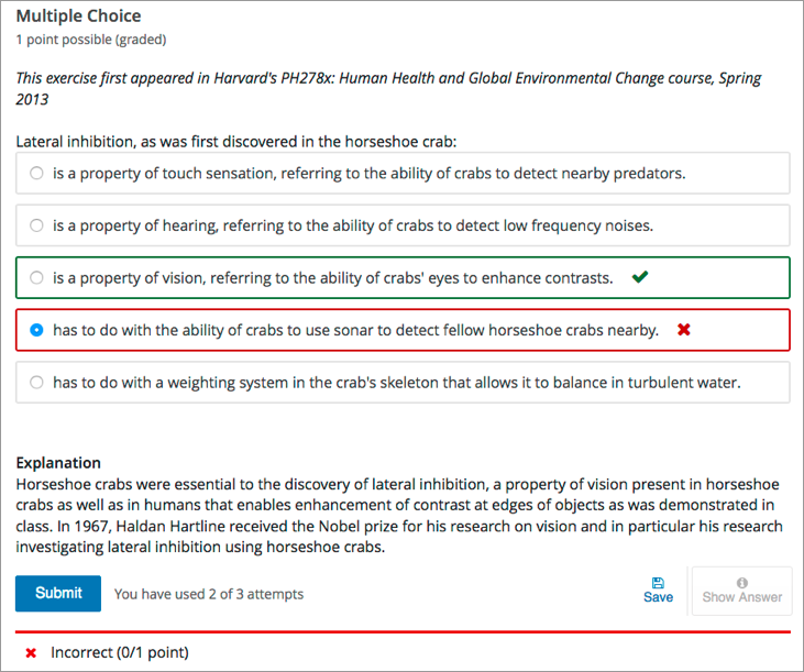 Ungraded single select questions can help students think about a concept in the context of knowledge transfer.