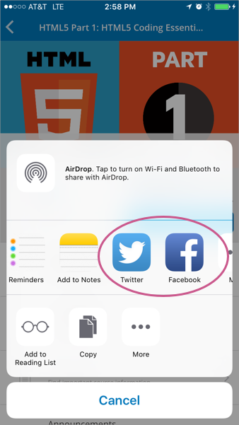 On the certificate web page, select the badge sharing icon.