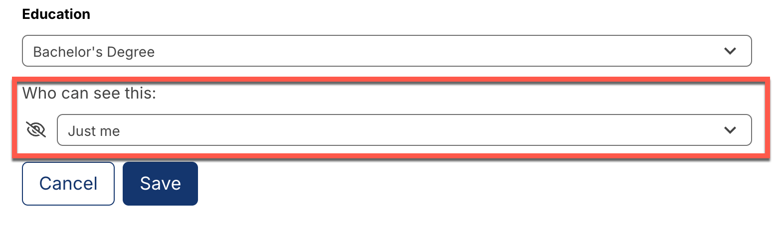 For any profile field, you can toggle the visibility of the profile information to other learners.